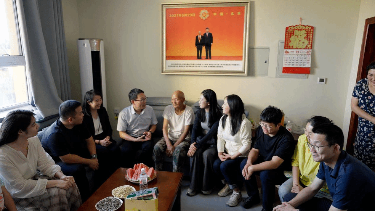在“七一勋章”、时代楷模获得者魏德友戍边事迹展览馆,师生们聆听边境线上的“活界碑”魏德友老人坚持巡边放牧、守卫国土六十余载的不平凡岁月。