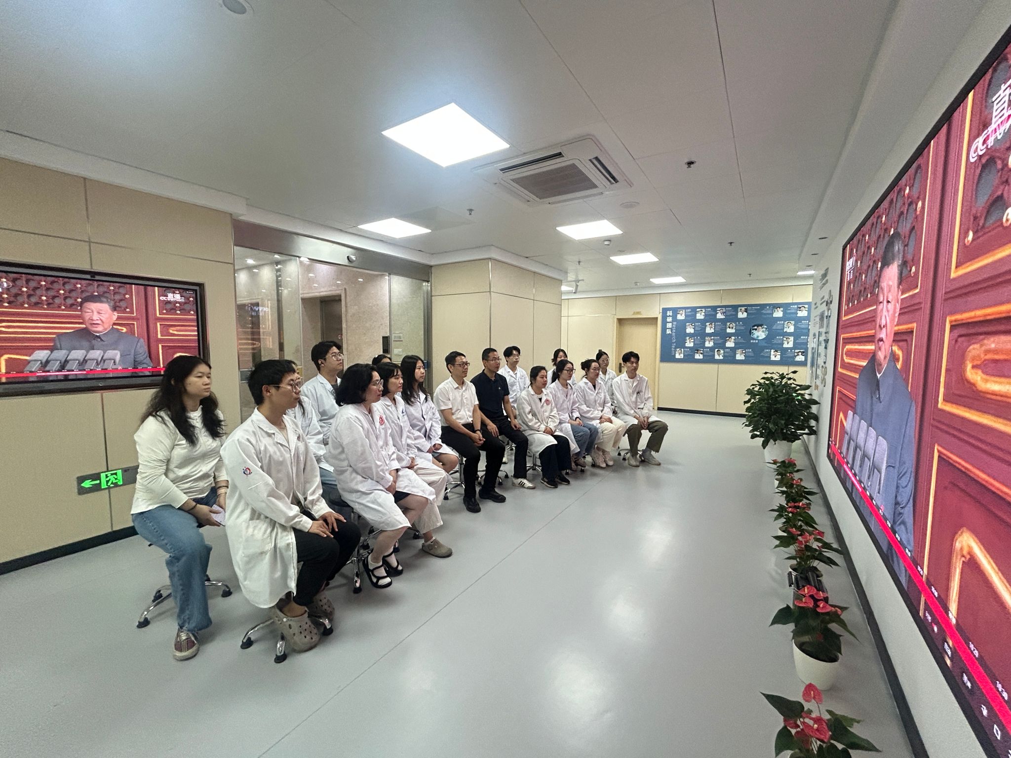 观看过程中,师生们神情专注,被阅兵仪式的宏大场面和庄严氛围所震撼。当整齐的方阵、先进的武器装备依次通过天安门广场时,大家纷纷鼓掌点赞,为祖国的强大感到无比自豪。本科生们在各实习点也认真观看了阅兵仪式,他们表示,虽然不能亲临现场,但通过屏幕依然能感受到那份热血与激情。